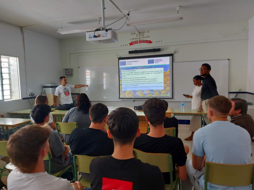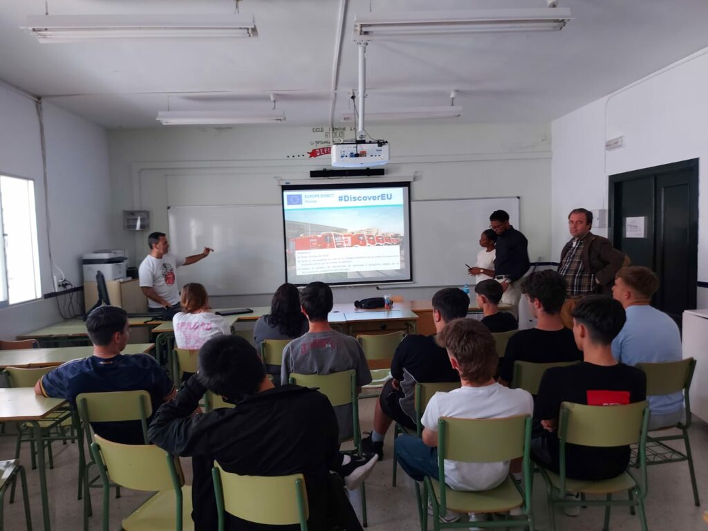 Y la otra actividad que hemos desarrollado ha sido, explicar al alumnado de 1º curso de los ciclos formativos del IES Monterroso, las oportunidades que ofrece Europa para los jóvenes, entre ellas: DiscoverEU, Cuerpo Europeo de Solidaridad, EURES, EUROPASS, EU Aid Volunteers y Erasmus para emprendedores.